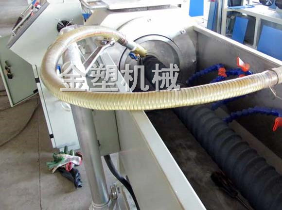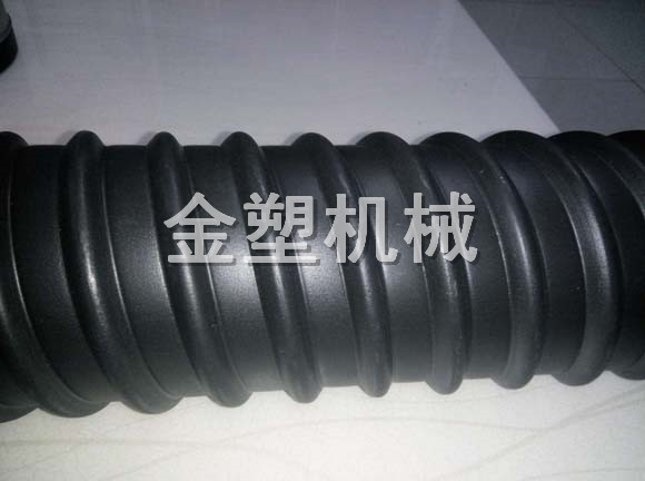 該機(jī)是在預(yù)應(yīng)力塑料波紋管(竹節(jié)型)設(shè)備基礎(chǔ)上開(kāi)發(fā)新型替代設(shè)備產(chǎn)品外形呈螺旋波紋形狀。該機(jī)具有設(shè)備造價(jià)低,結(jié)構(gòu)緊湊,工藝簡(jiǎn)單,操作方便,一機(jī)兩用(圓扁管都可生產(chǎn))等特點(diǎn)。全套設(shè)備由SJ系列單螺桿擠出→擠出模具→螺旋成型模具→真空噴淋水箱→牽引機(jī)→鋸割機(jī)→反轉(zhuǎn)平臺(tái)組成 。